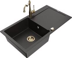 MEXEN/S Leogranitový dřez 1 s odkapávačem včetně baterie Carla, černá/zlatá metalik 6501-75-670700-50