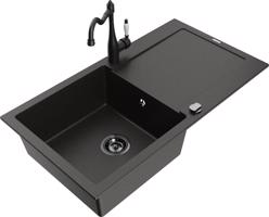 MEXEN/S Leogranitový dřez 1 s odkapávačem včetně baterie Carla, černá/zlatá metalik 6501-75-670700-70-B