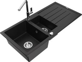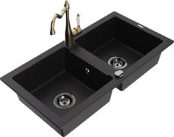 MEXEN/S Mario granitový dřez 2-bowl včetně baterie Carla, černá 6504-77-670700-50-B