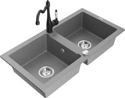 MEXEN/S Mario granitový dřez 2-bowl včetně baterie Carla, šedá 6504-71-670700-70