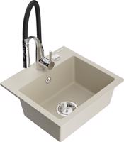 MEXEN/S Milo granitový dřez 1-miska včetně baterie Aster, béžová 6505-69-73450-07