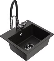 MEXEN/S Milo granitový dřez 1-miska včetně baterie Aster, černá/zlatá metalik 6505-75-73450-07-B
