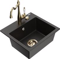 MEXEN/S Milo granitový dřez 1-miska včetně baterie Carla, černá/zlatá metalik 6505-75-670700-50