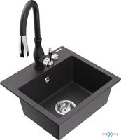 MEXEN/S Milo granitový dřez 1-miska včetně baterie Savita, černá kropenatá 6505-76-672601-70