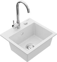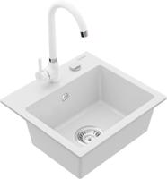 MEXEN/S Milo granitový dřez 1-miska včetně baterie Telma, bílá 6505-20-670200-50