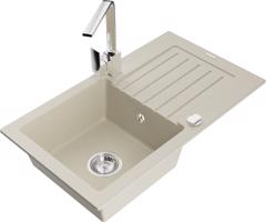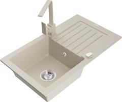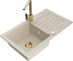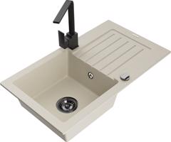 MEXEN/S Pablo granitový dřez 1-miska s odkapávačem včetně baterie Rita, béžový 6510-69-670300-00