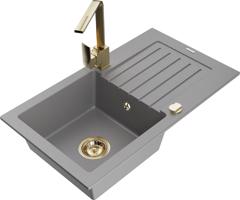 MEXEN/S Pablo granitový dřez 1-miska s odkapávačem včetně baterie Rita, šedý 6510-71-670300-71