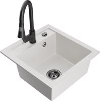 MEXEN/S Pablo granitový dřez 1-miska včetně baterie Carla, černá/stříbrná metalik 6510-73-670700-70