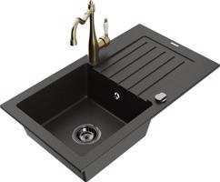 MEXEN/S Pablo granitový dřez 1-miska včetně baterie Carla, černá/zlatá metalik 6510-75-670700-50-B