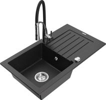 MEXEN/S Pablo granitový dřez 1 s odkapávačem včetně baterie Aster, černá/stříbrná metalik 6510-73-73450-07