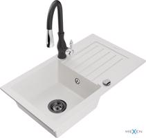 MEXEN/S Pablo granitový dřez 1 s odkapávačem včetně baterie Savita, bílá 6510-20-672601-70