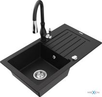 MEXEN/S Pablo granitový dřez 1 s odkapávačem včetně baterie Savita, černá 6510-77-672601-70