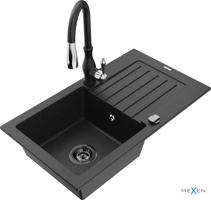 MEXEN/S Pablo granitový dřez 1 s odkapávačem včetně baterie Savita, černá/stříbrná 6510-73-672601-70-B