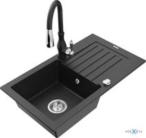 MEXEN/S Pablo granitový dřez 1 s odkapávačem včetně baterie Savita, černá/stříbrná metalik 6510-73-672601-70