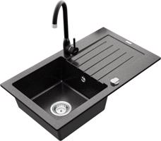 MEXEN/S Pablo granitový dřez 1 s odkapávačem včetně baterie Telma, černá/stříbrný 6510-73-670200-00