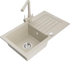 MEXEN/S Pablo granitový dřez s odkapávačem včetně baterie Duero, béžová 6510-69-671600-69