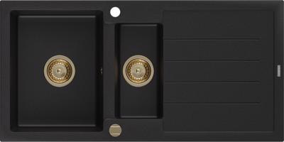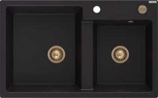 MEXEN/S Tomas granitový dřez 2-bowl 800x500 mm, czarny, + zlatý sifon 6516802000-77-G