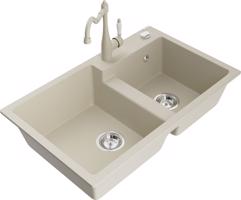 MEXEN/S Tomas granitový dřez 2-bowl včetně baterie Carla, béžová 6516-69-670700-69