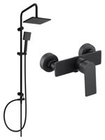 Technická data: Materiál sloupku: Nerezová ocel, ABS Povrchová úprava sloupku: Černá Výška: 950 mm Šířka sloupku: 22 mm Vzdálenost od stěny: 380 mm Posuvný držák na sluchátko Nastavitelné montážní držáky Materiál dešťové sprchy: Plast Povrchová úprava dešťové sprchy: Černá Velikost dešťové sprchy: 200 mm Materiál sluchátek: Plast Povrchová úprava sluchátek: černá Počet funkcí: 1 Připojení: G 1/2" Výška sluchátka: 225 mm Šířka hlavy: 105 mm Materiál hadice: Plášť z nerezové oceli Hadí provedení: Černá Délka hadice: 150 cm Připojení: 1/2" Mosazné hroty Pružný materiál odolný proti roztahování a ohýbání Materiál baterie: mosaz Hlava: Keramická Povrchová úprava: černá EAN: 5907709181366