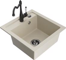 MEXEN/S Vito granitový dřez 1-miska včetně baterie Carla, béžová 6503-69-670700-70