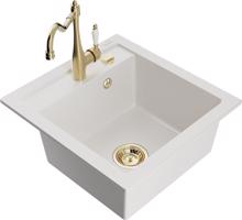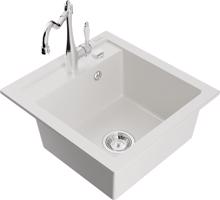 MEXEN/S Vito granitový dřez 1-miska včetně baterie Carla, bílá 6503-20-670700-50