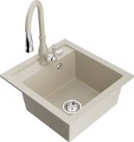 MEXEN/S Vitogranitový dřez 1-miska včetně baterie Savita, béžová 6503-69-672601-69