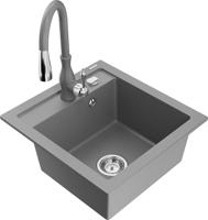 MEXEN/S Vitogranitový dřez 1-miska včetně baterie Savita, šedá 6503-71-672601-71