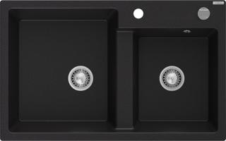 MEXEN Tomas granitový dřez 2-bowl 800x500 mm,černá, sifon chrom 6516802000-77
