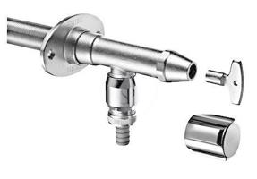 Venkovní nezámrný ventil Polar II instalační konstrukční sada sedlo ventilu je mrazuvzdorné ve zdivu pro tloušťku zdiva 200-500 mm nucené přivzdušnění k automatickému vyprázdnění armatury při každém uzavření instalace stěnové průchodky během fáze hrubé stavby dodatečné zkrácení na přesný konstrukční rozměr s přivzdušňovačem potrubí, armatura splňuje normu DVGW VP 648, bezpečnostní konstrukce podle EN 1717 Specifikace stěnová průchodka se zabudovaným ventilovým sedlem izolovaná hadice uchycení na stěnu zajištěné proti přetočení upevňovací materiál montážní krytka instalační sada: tělo armatury s vrškem na nástrčný klíč i ovládací rukojeť, dlouhé vřeteno se zpětnou klapkou, nástěnná rozeta s vnitřním závitem, upevňovací materiál, montážní pomůcky (pro zkracování) k instalaci během hrubé stavby průměr armatury Ø 38 mm materiál: mosaz povrch: matný chrom EAN: 4021163152067
