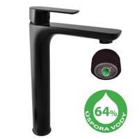 SLEZAK-RAV Spořící vodovodní baterie umyvadlová, vysoká VLTAVA ECO černá matná, Barva: Černá matná, Povrchová úprava: Černá matná, Rozměr: 1/2'' VTE430.5CMAT