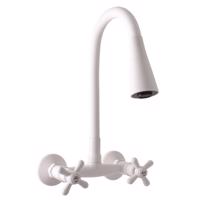 Vodovodní baterie dřezová nástěnná s flexibilním otočným ramínkem se sprchou. tato baterie je vybavena keramickými 1/2" vršky od německé firmy Flühs MD0093D sprška PS0013B otočné flexibilní ramínko SR0013B provedení bílá Typ provedení rozteče: "0" - rozteč baterie 100 mm (MK102.0/13B) "5" - rozteč baterie 150 mm (MK102.5/13B) Tuto baterii lze kombinovat s vanovými a sprchovými bateriemi ze série MORAVA RETRO SLEZÁK - RAV. Záruka: na těsnost odlitku (tělo baterie) - 10 let na vršky a povrchovou úpravu - 2 roky na ostatní díly dle Občanského zákoníku Zakázková výroba - termín dodání do 2-4 týdny. EAN: 8596462218838