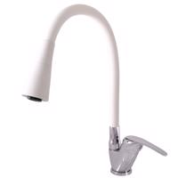 SLEZAK-RAV Vodovodní baterie dřezová s flexibilním ramínkem se sprchou SÁZAVA, Barva: chrom/bílá, Rozměr: 1/2'', Typ ručky: ručka SÁZAVA 1 SA006.5/13CB