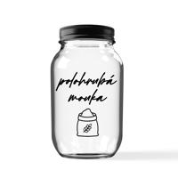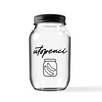 Sklenice na kuskus má objem 0,9 litr, výšku 16 cm, průměr dna 9 cm a černé šroubovací víčko.