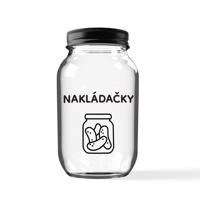 Sklenice na nakládačky má objem 3,75 litrů, výšku 22,5 cm a průměr 15,5 cm a černé šroubovací víčko.