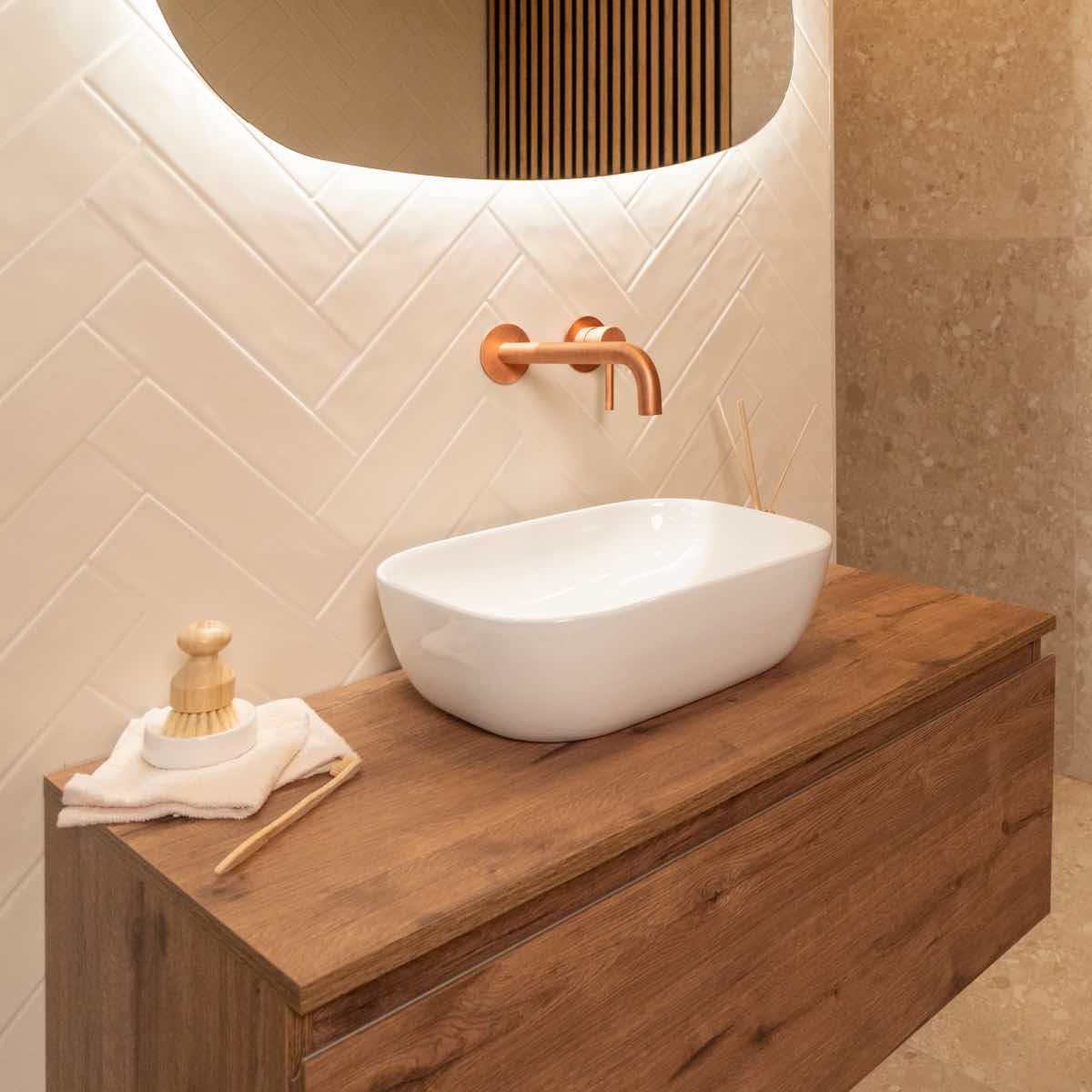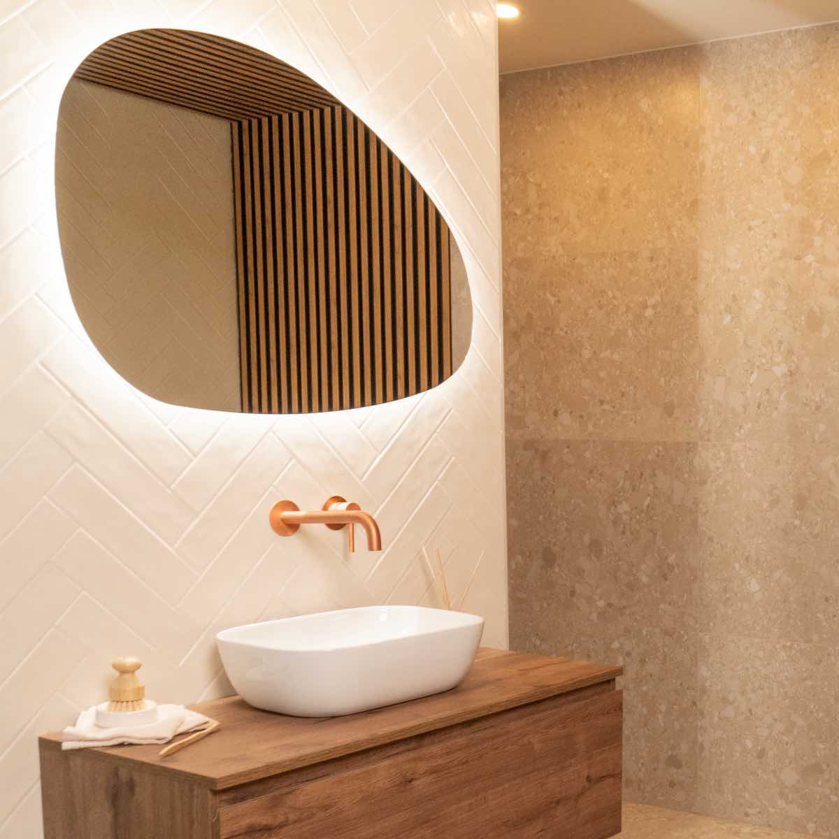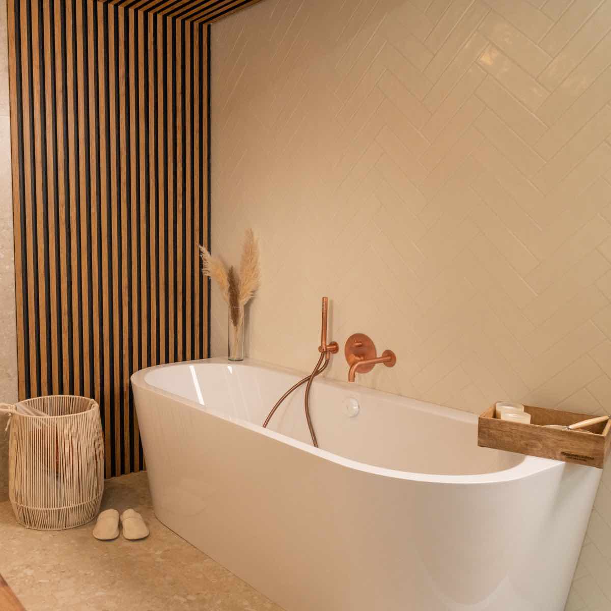 Vstupte do koupelny BIBIONE, kde se prolíná teplo přírody s moderním designem. Každý detail této koupelny byl navržen tak, aby působil uklidňujícím a harmonickým dojmem.