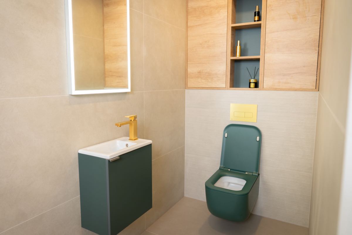 Koupelna LIMEA V kombinuje moderní design s netradičními barevnými akcenty, které se prolínají celým prostorem, ať už ve výrazných prvcích, nebo v detailech doplňků.