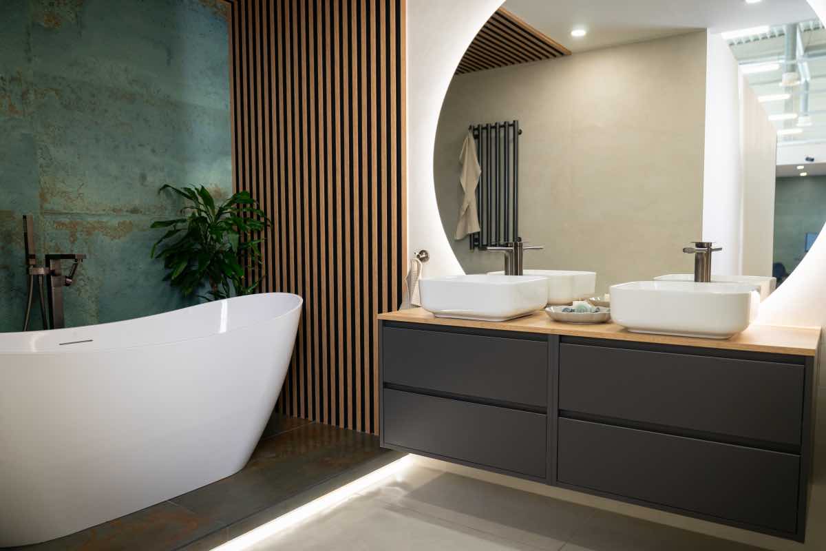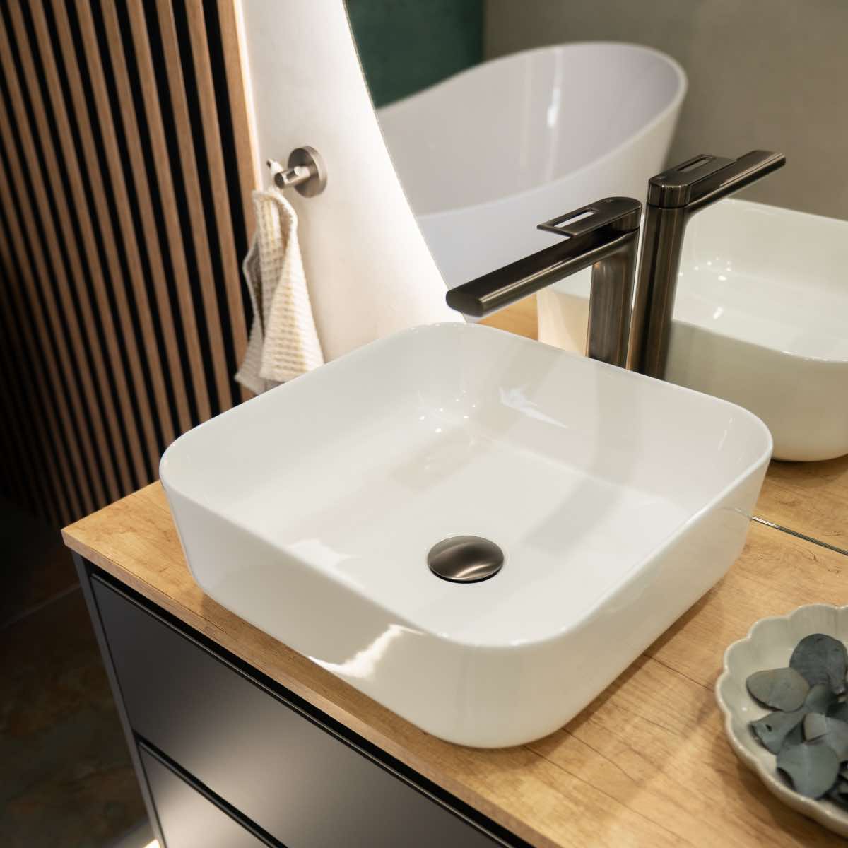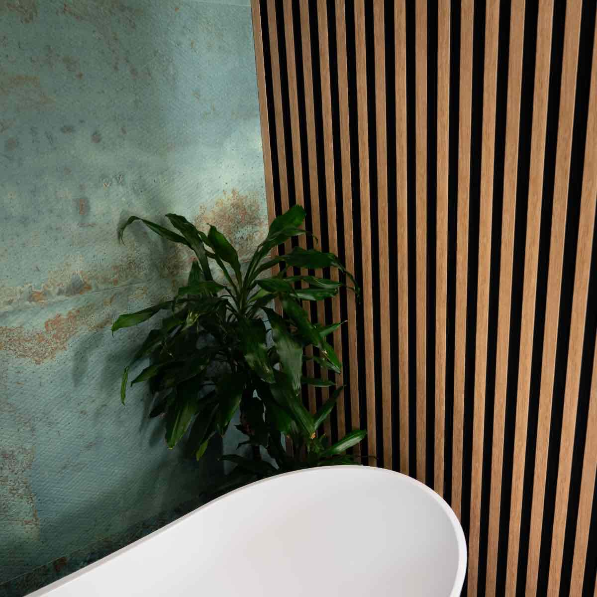 Unikátní obklady v imitaci mědi a černé detaily. To je koupelna PONTE GREEN V, jeden z našich momentálně nejpopulárnějších konceptů.