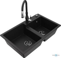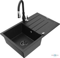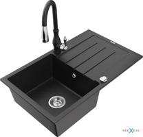 MEXEN/S Andres granitový dřez s odkapávačem včetně baterie Rita, černá nakrapiany 6515-76-670300-70