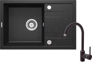 MEXEN/S Pablo granitový dřez 1 s odkapávačem včetně baterie Savita, černá/stříbrná metalik 6510-73-672601-70